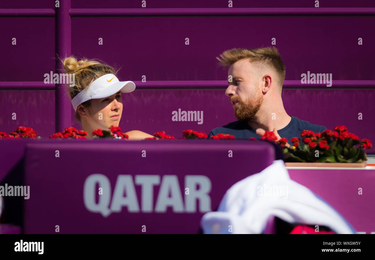 Elina Svitolina Of The Ukraine Talks To Coach Andrew Bettles At The 2019 Qatar Total Open Wta Premier Tennis Tournament Stock Photo Alamy