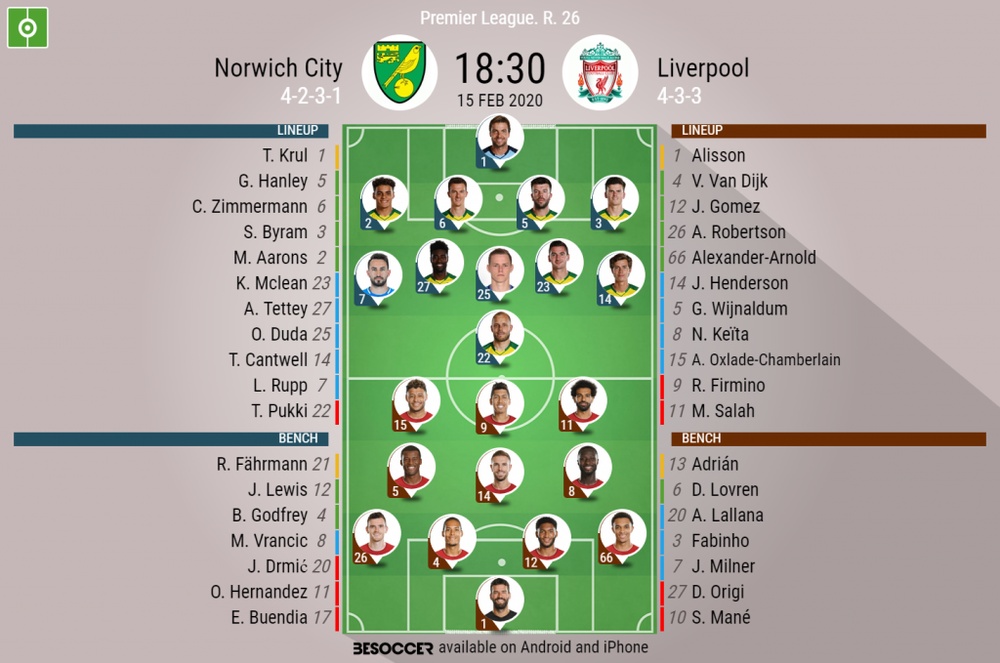 Norwich City 0-3 Liverpool. The Reds will be without Curtis Jones concussion and Andy Robertson ankle for.
