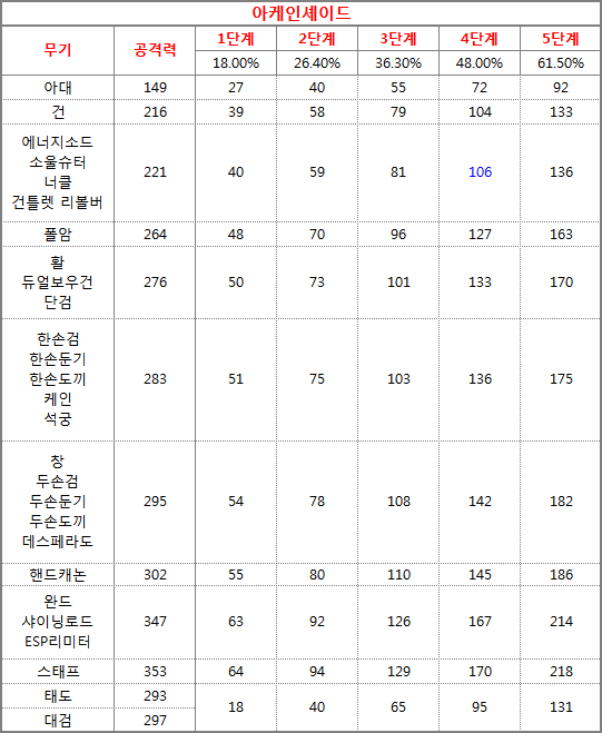 이번글은 아케인셰이드 무기 추옵을 정리한 글입니다. 150제 무기 파프니르 무기 추옵표 기본 공격력마력 5추 4추 3추 2추 1추 한손검 164 20 29 40 53 68 한손도끼 164 20 29 40 53 68 한손둔기 164 20 29 40 53 68 두손검 171 21 31. 무기 기본옵션 추가옵션.
